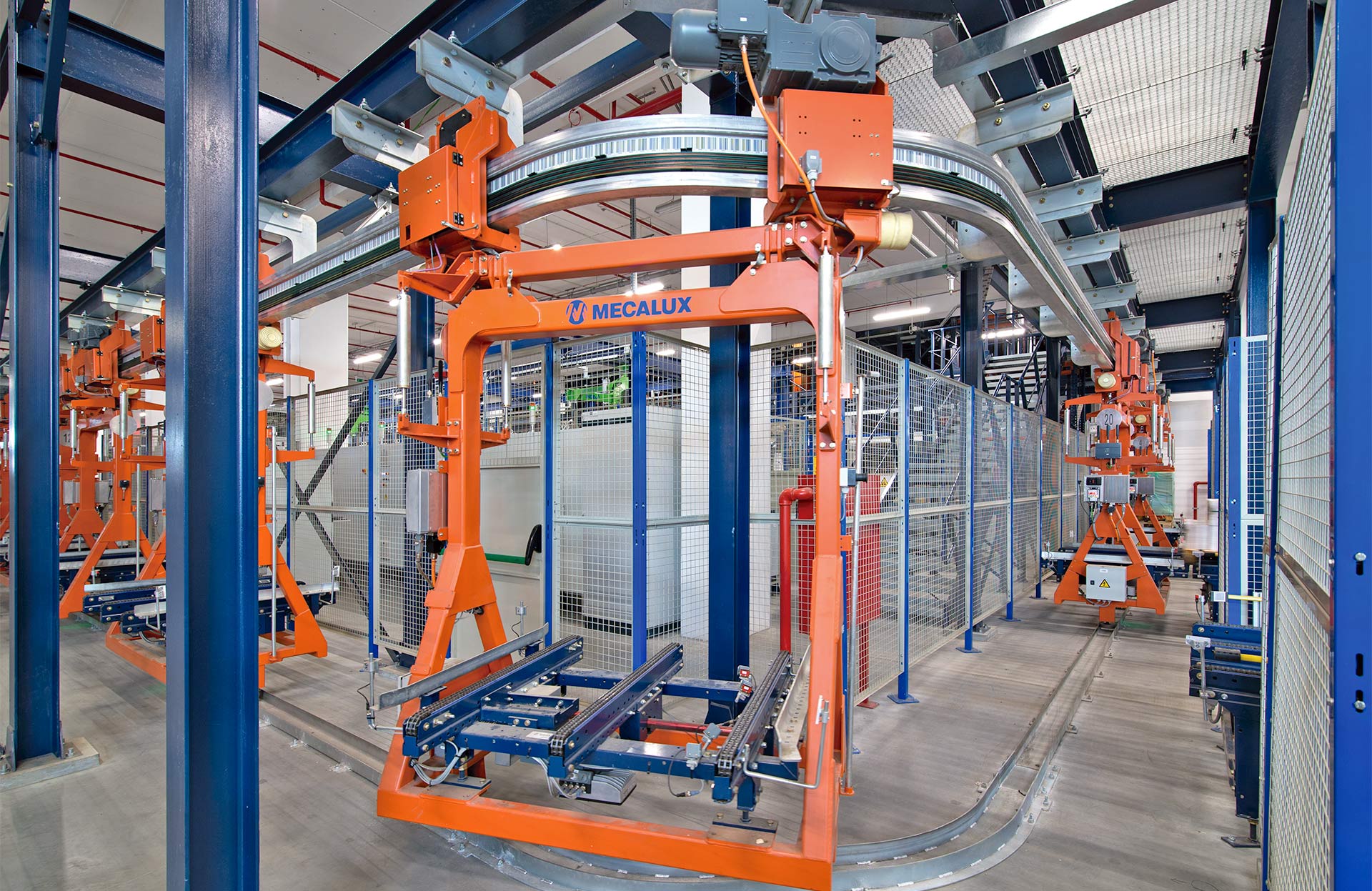 - Long distances: electric monorail circuits are an excellent solution for automating the transport of palletised loads between distant points.