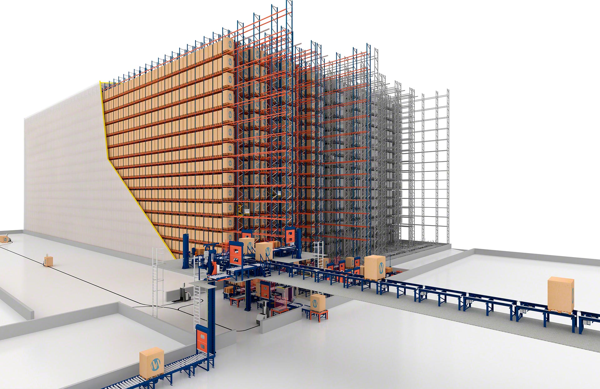 - High-bay capability: this multi-level solution lifts pallets up to 40 m in height.