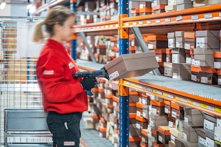 - <strong>Picking cart prepared for pick-to-box</strong>: with the pick-to-box method, the package where the goods are to be placed is preselected; the picking route is started and order pickers put the SKUs directly into the box.