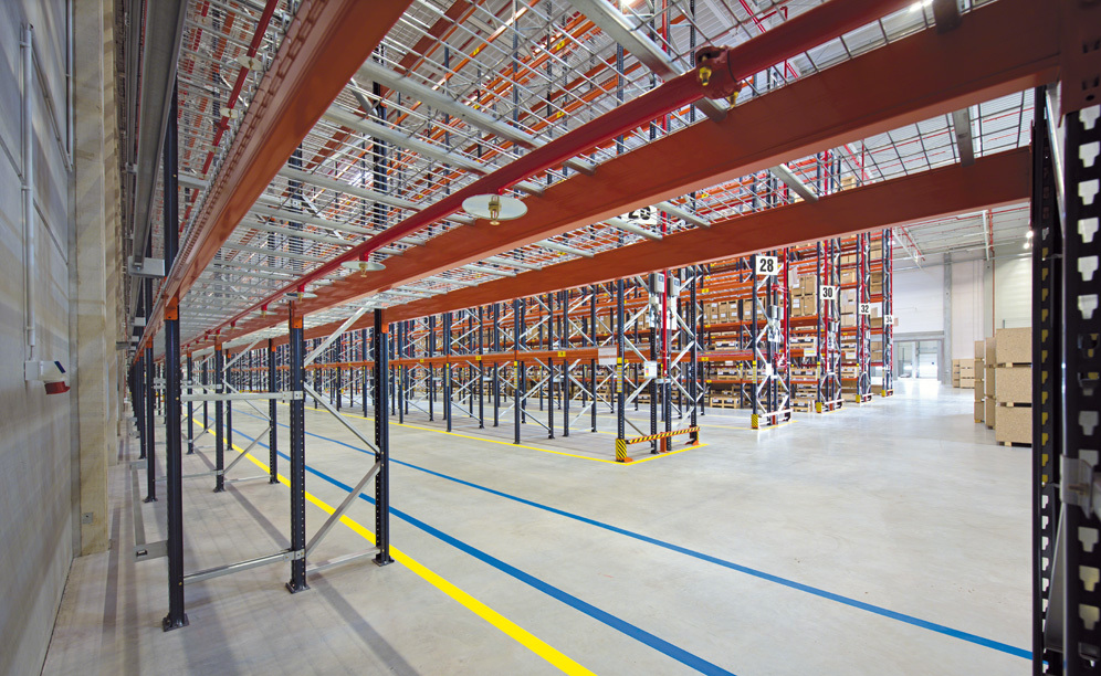 Guides installed on the sides of the aisles allow forklifts to be centred when entering and circulate inside with greater facility.