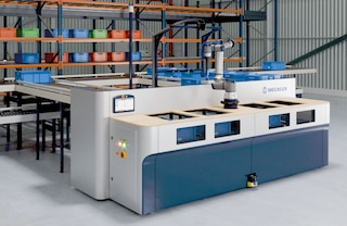 Yes. Thanks to its design, it is possible to automate a manual pick station by installing a robot capable of moving products from storage totes to order boxes.