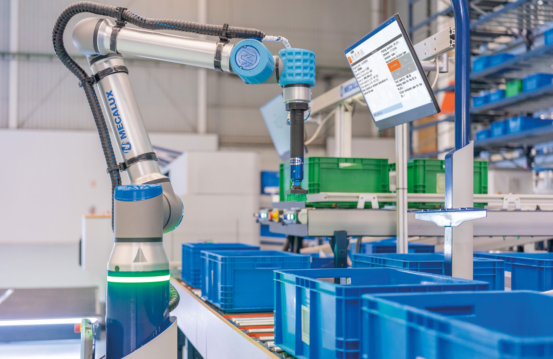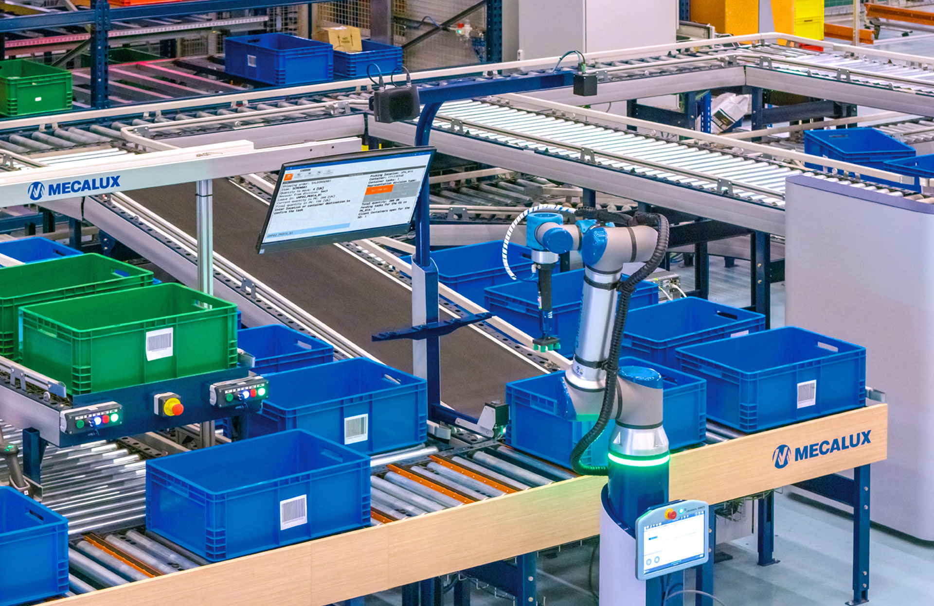 While a standard industrial robot cannot share space with people for safety reasons, a cobot is designed precisely to work alongside humans. When actively in use, industrial robots must be isolated in enclosed spaces. Cobots, in contrast, do not require a physical barrier around them. Mecalux’s picking robot, for instance, simply slows down when an operator approaches and speeds up again when the person moves away. Additionally, cobots are typically faster to set up and program than industrial robots.